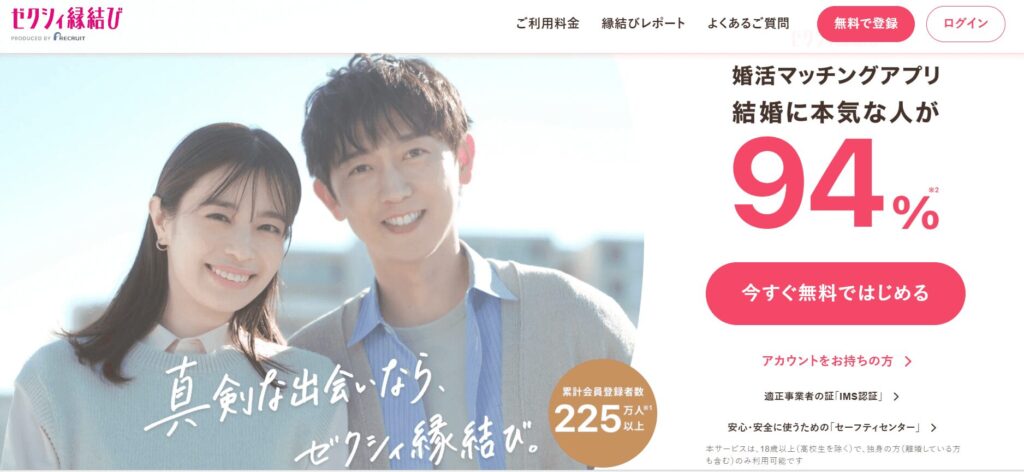 ゼクシィ縁結びを利用している男女の94%が「将来的に結婚を見据えられるお相手」を求めており、本気度が高いユーザーが多い点が特徴です。