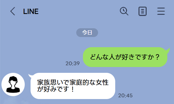 「家庭的な女性」「子どもが好きな人」など、相手に性格や価値観が合うかを重視している答えであれば、結婚を視野に入れた出会いを探している男性の可能性が高いといえます。